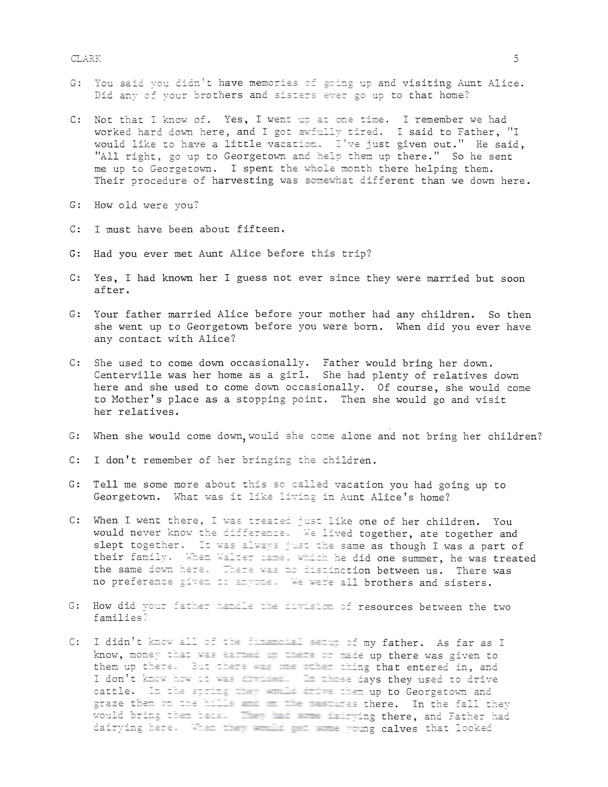 G: Tell me some more about this so called vacation you had going up to Georgetown. What was it like living in Aunt Alice's home?