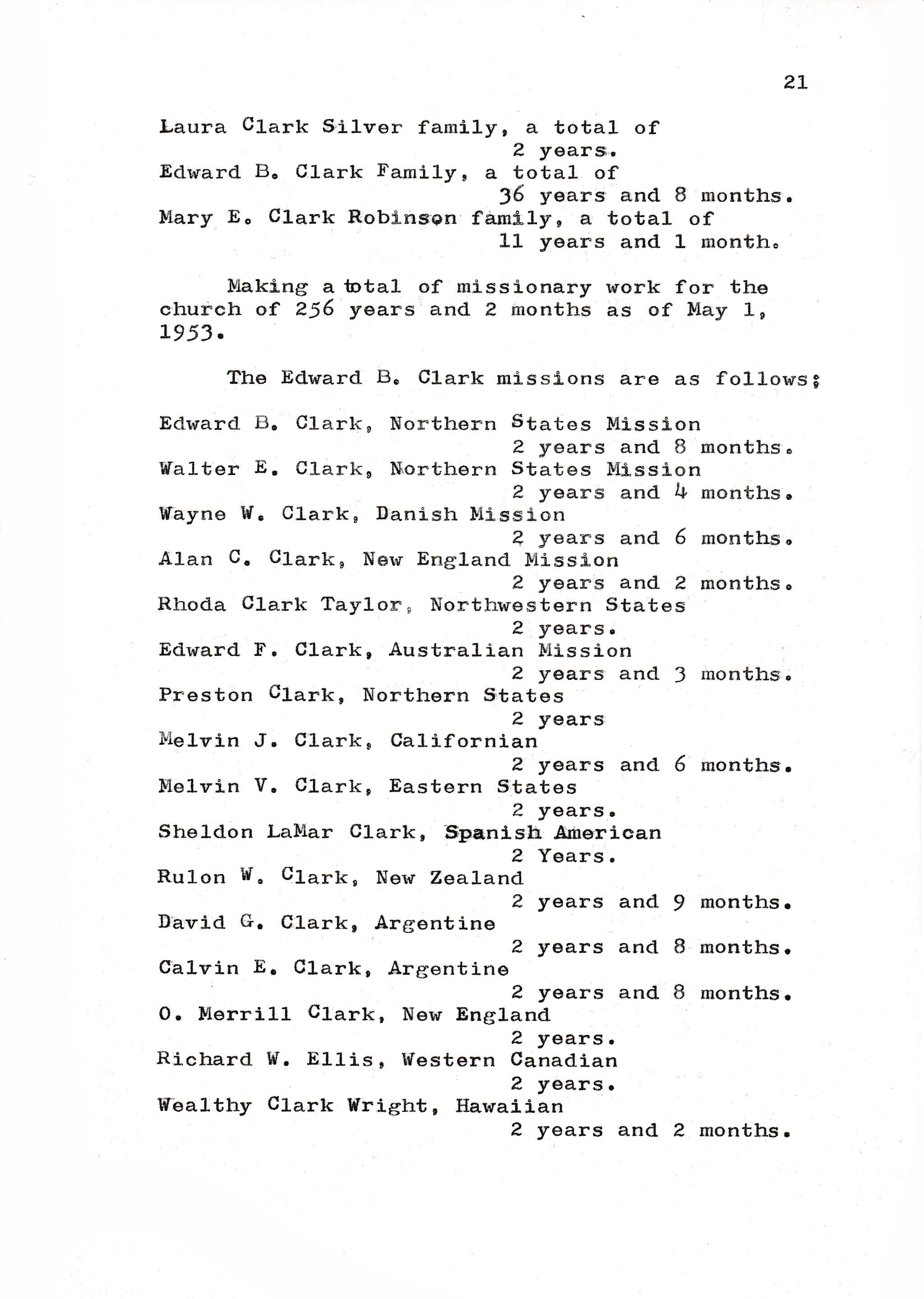 Making a total of missionary work for the church of 256 years and 2 months as of May 1, 1953.