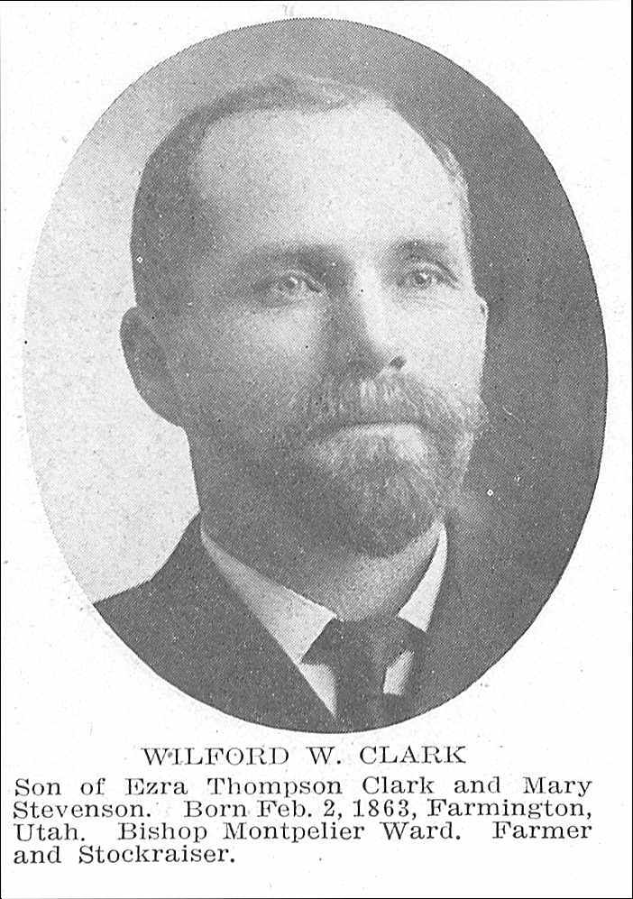 Son of Ezra Thompson Clark and Mary Stevenson. Born Feb. 2, 1863, Farmington, Utah. Bishop Montpelier Ward. Farmer and Stockraiser.
