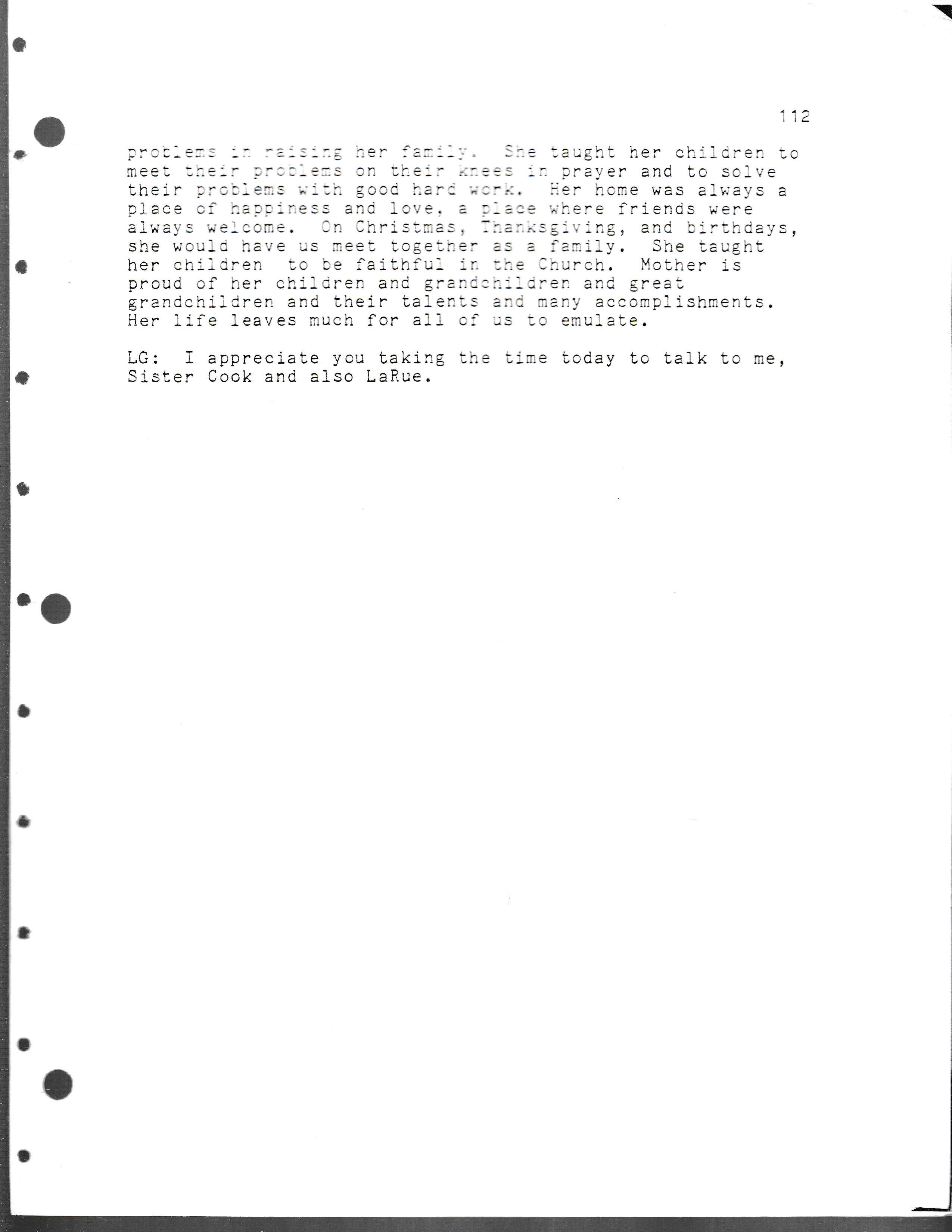 LG: I appreciate you taking the time today to talk to me, Sister Cook and also LaRue.